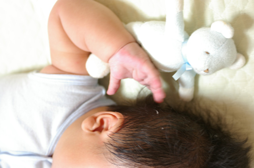 抱っこしていれば眠るんだけど、お布団にねかせれば起きちゃう。