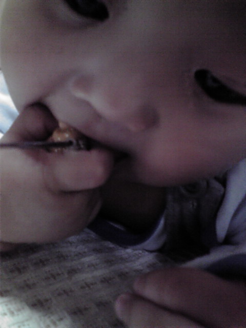 若は始めは離乳食を食べてくれなくて、それが悩みだったんだけど。最近はかなり食べてくれて。